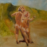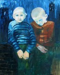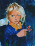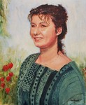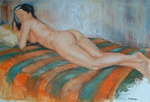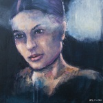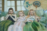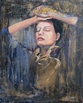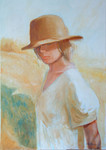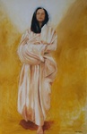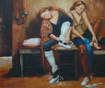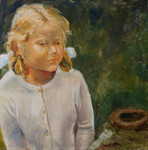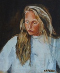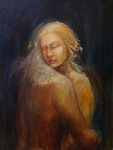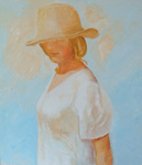 olie op doek 100 x 80 cm vrouw in witte jurk rusten op een stoel